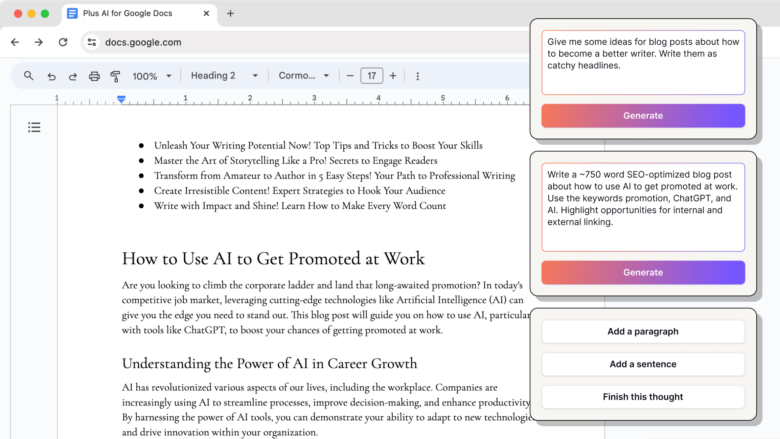 • Drafts content from a simple prompt