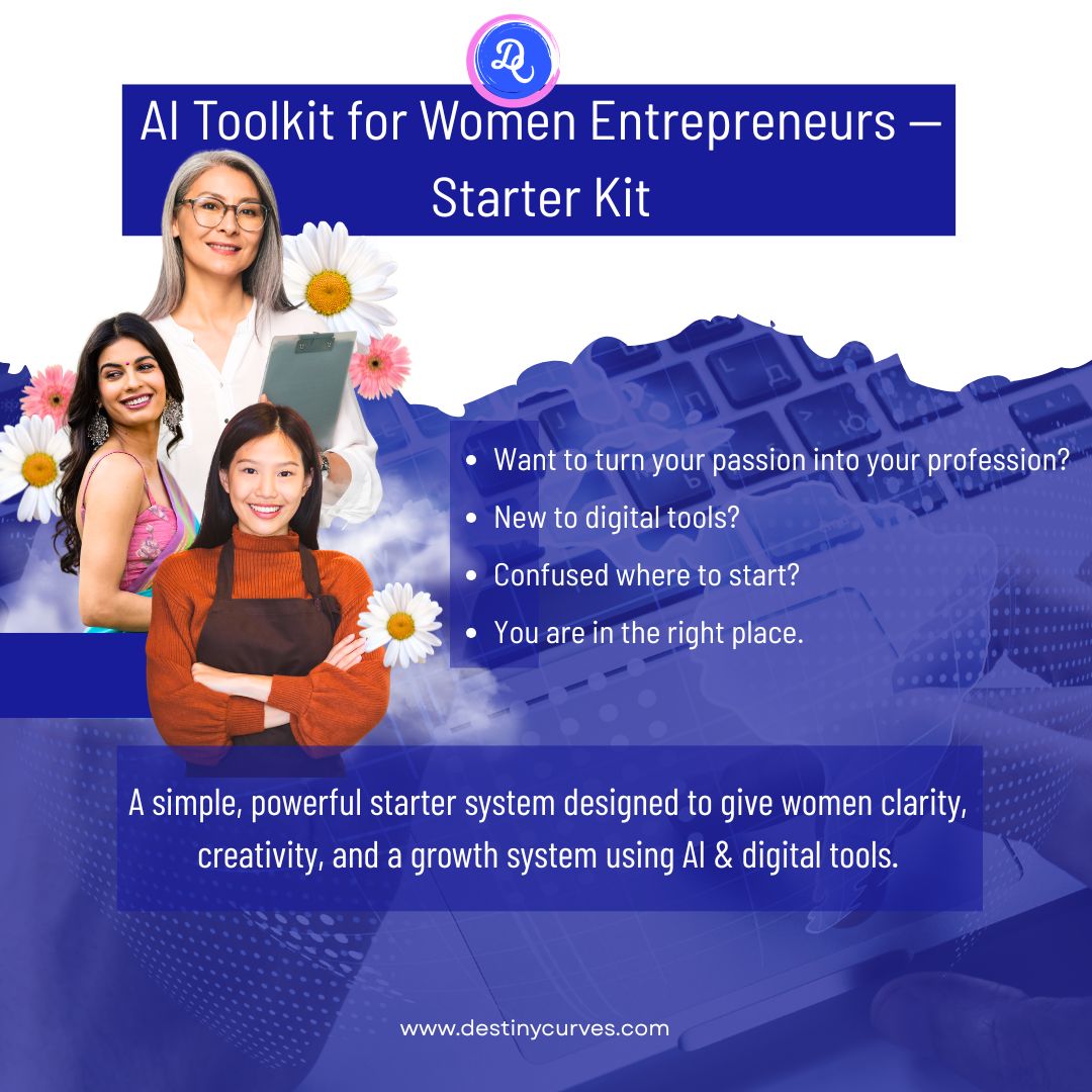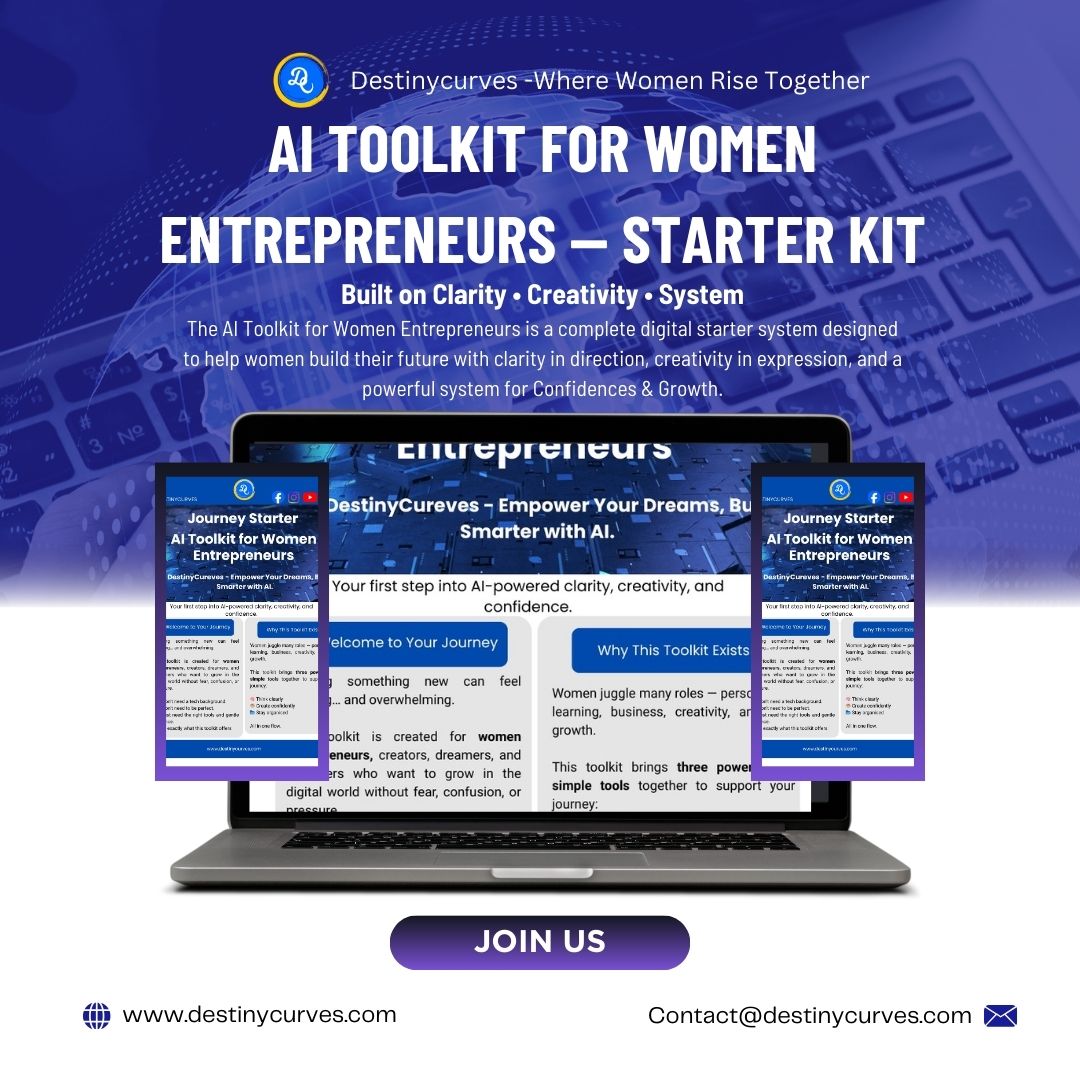 The AI Toolkit for Women Entrepreneurs: Journey Starter is a beginner-friendly guide created for women who are ready to step into the digital world with confidence — even if they feel unsure where to begin.